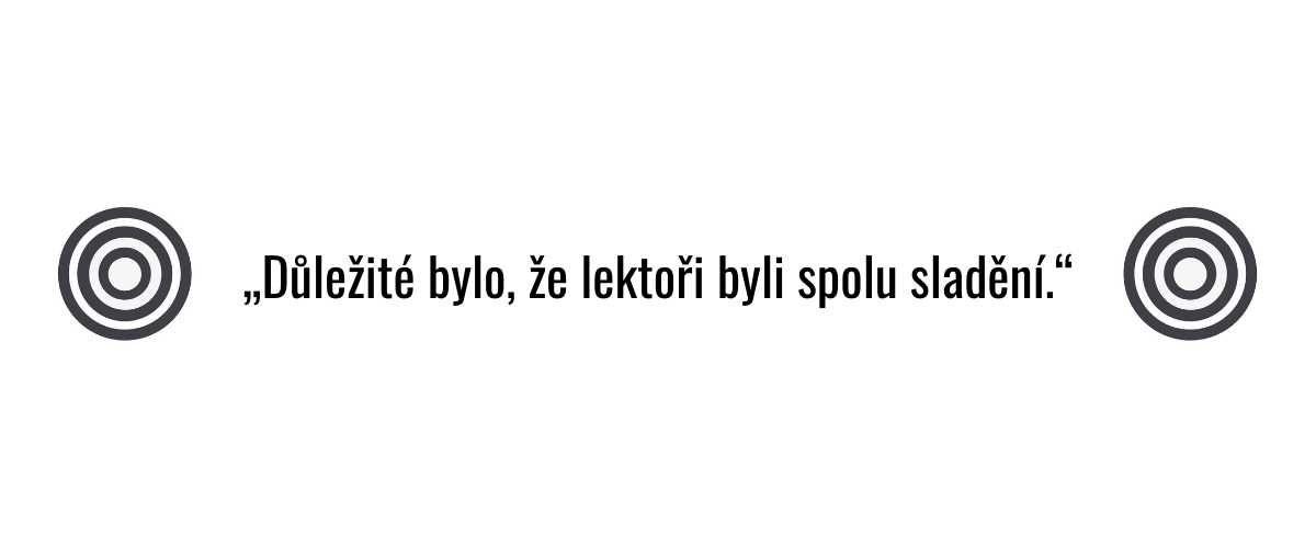 S lektory z týmu TUDYTAM spolupracujeme více než 5 let. Při kurzech a supervizích oceňujeme jejich styl práce, při kterém se nebudete nikdy nudit. Ačkoliv musíte být aktivní, i když jste doufali v odpočinkové školení, nakonec vás to ještě bude bavit a zapamatujete si mnohem více, než jste čekali. Děkujeme a těšíme se na další spolupráci.